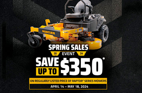 Save up to $350 On Hustler Raptor Series Mowers April 14- May 18, 2024